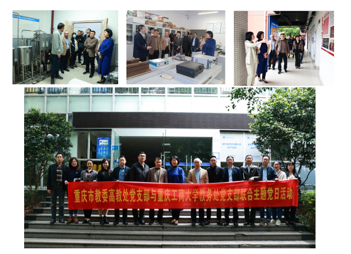 主题党日活动分两个阶段。第一阶段全体参会党员同志现场参观了重庆市的食品营养与健康(火锅)现代产业学院、智能信息化现代产业学院和经济学拔尖人才培养示范基地建设成果与进展。